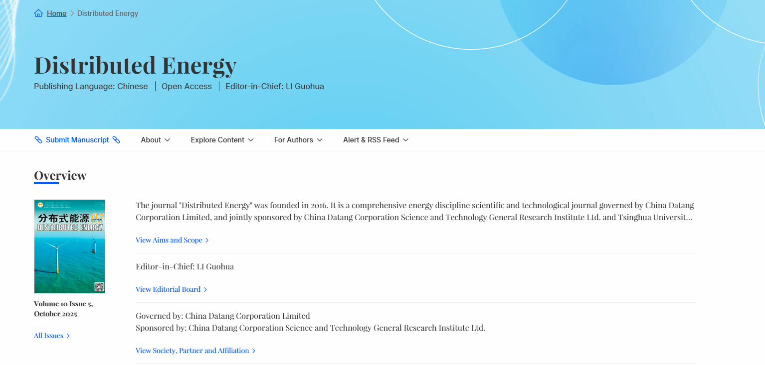 近日,《分布式能源》正式入驻SciOpen国际化数字出版平台。此举标志着《分布式能源》在推动开放科学、提升国际影响力方面迈出关键一步,也为全球能源领域学者提供了高质量的中文学术资源。