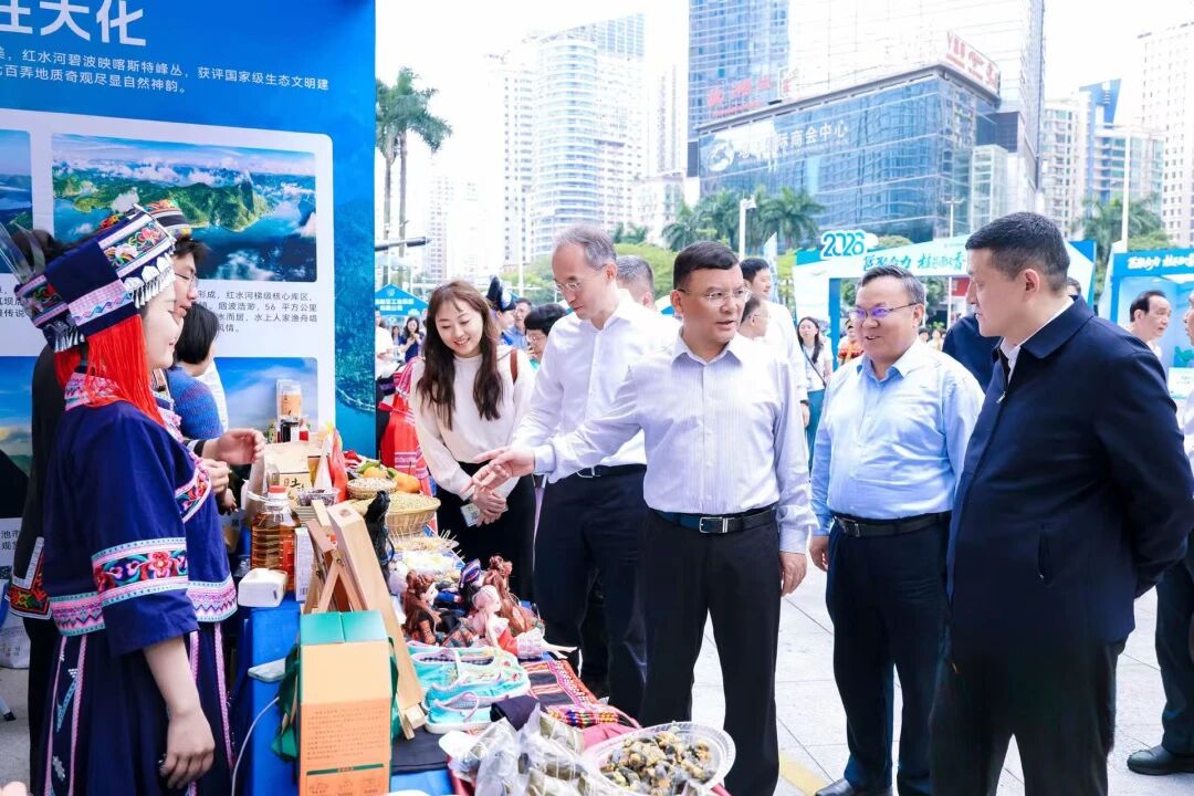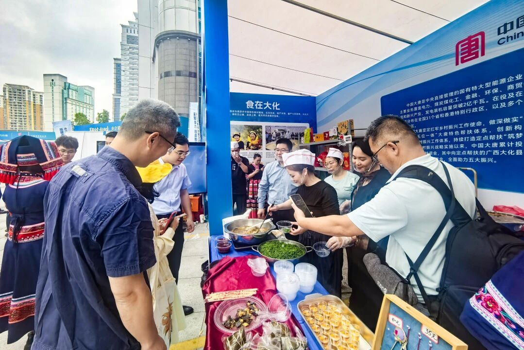 中广核精选110余款优质农产品开展专题展销,展示蚕丝被、特色茶饮、猕猴桃、坚果果干等产品,邀请壮族同胞现场推介,通过丰富多元的形式扎实推进消费帮扶工作,惠及20余家农户企业。