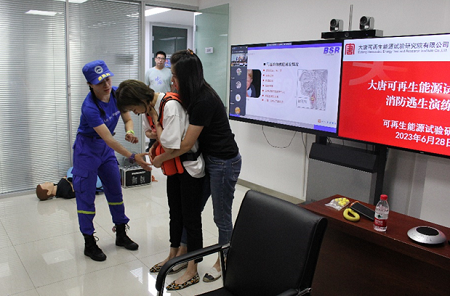 此次培训演练为期一天,由朝阳区蓝天救援队和房山消防学校授课指导,内容包括消防安全、个人防护、避灾路线、创伤急救和自救互救知识等,可再生院北京办公区、云南办公区及各技术服务现场全体人员参加演练。