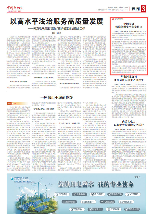 [中国电力报]2026-3-18-3中国大唐保障能源安全稳定供应